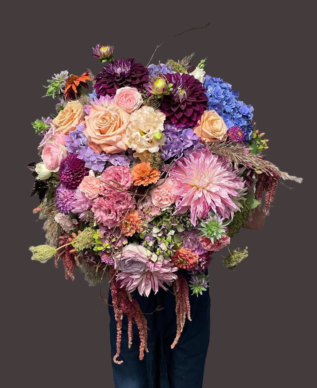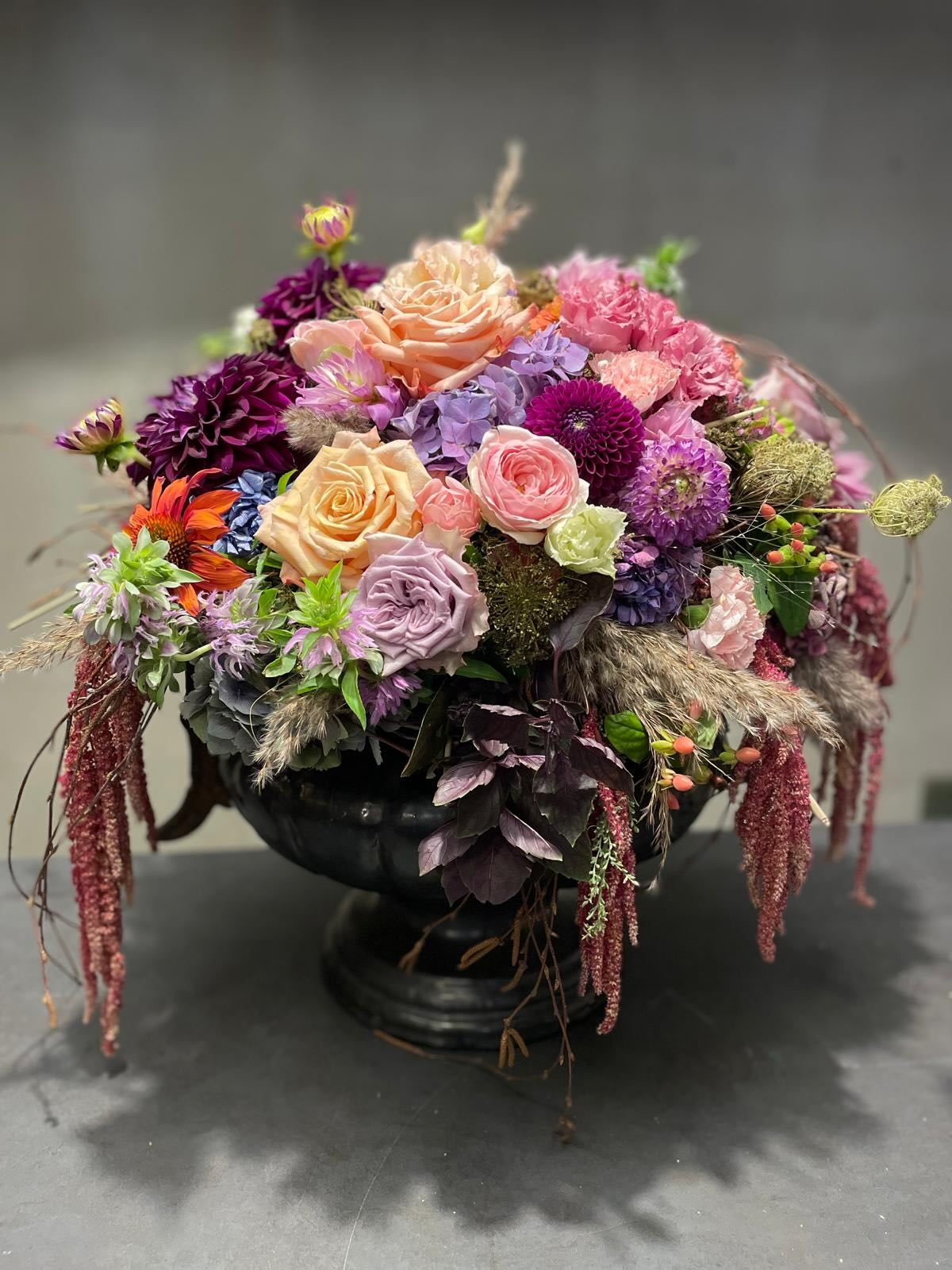A Bold Beauty csokor igazi látványos kijelentés: merész, színes és elbűvölően elegáns. A gazdag, telt virágfejek, a vibráló rózsaszínek, lilák, barack- és krémszínek egy különleges, művészi kompozícióban találkoznak, amit gondosan válogatott zöldek és rusztikus részletek egészítenek ki.