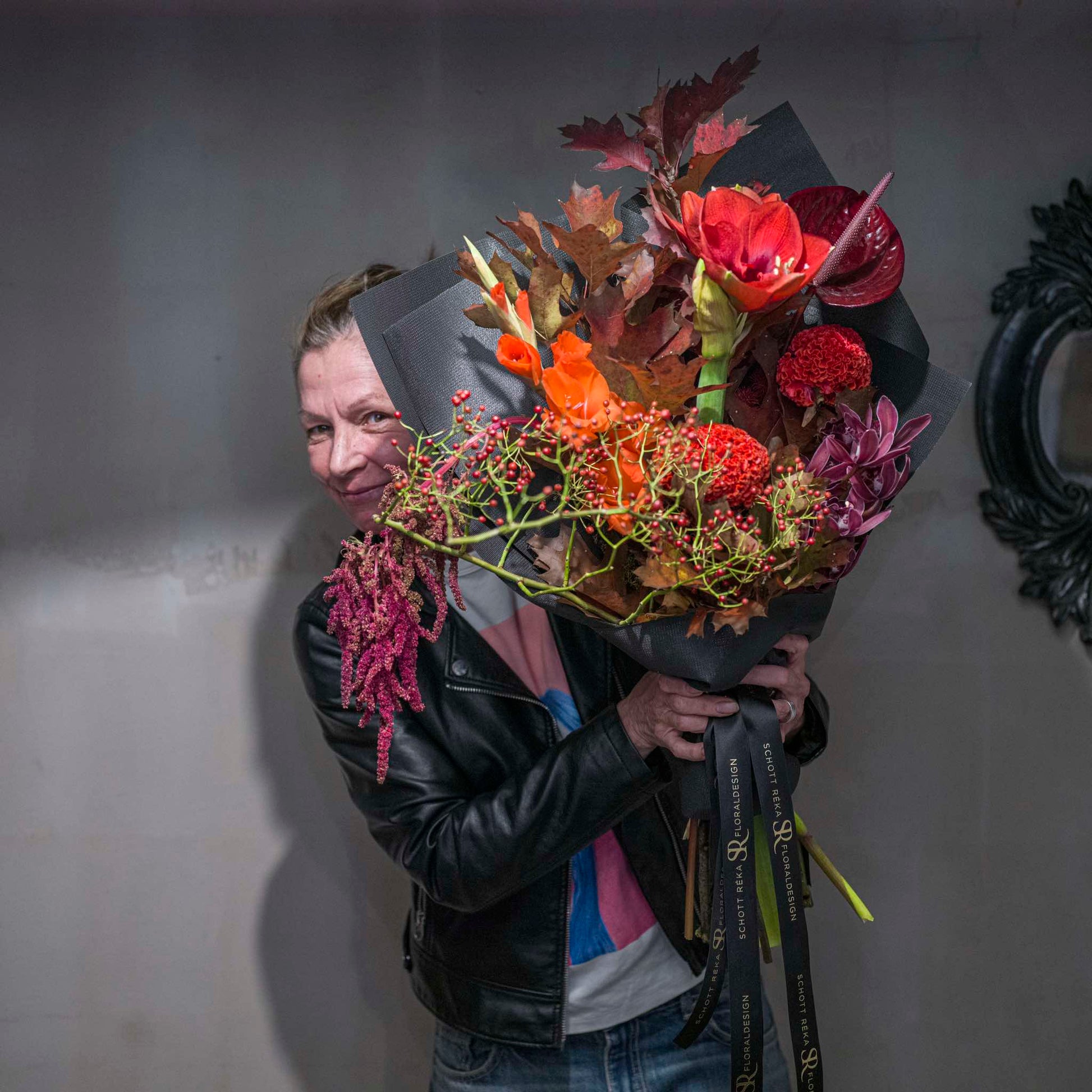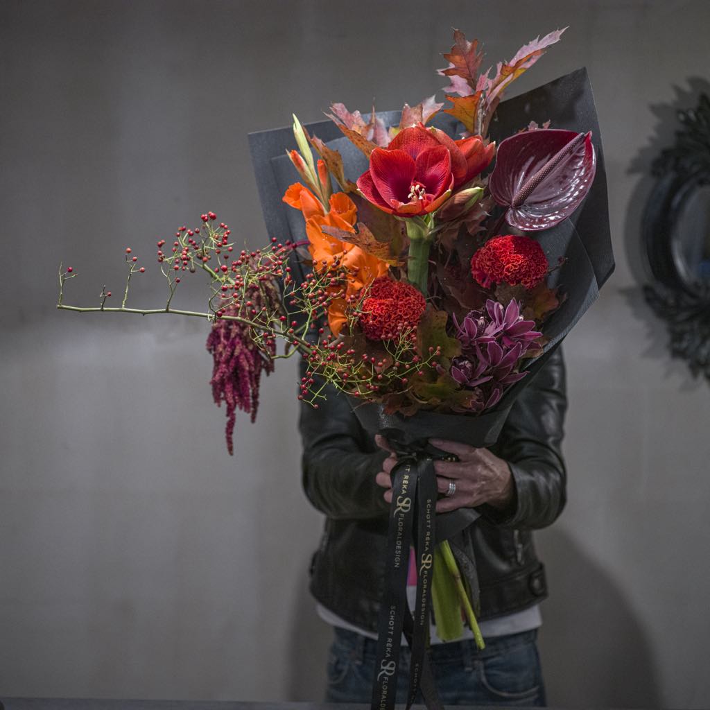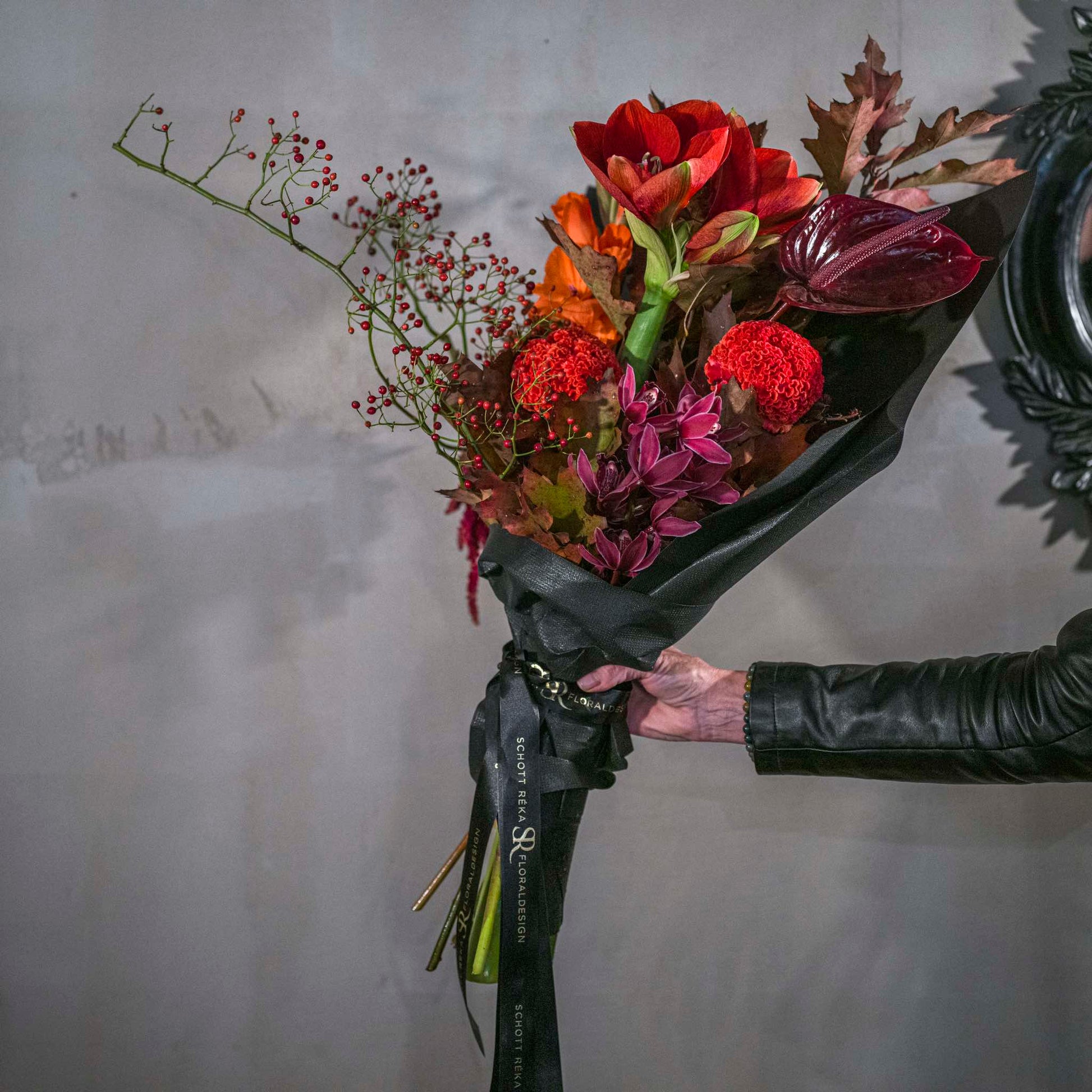 Schott Réka stílusban kötött kreatív csokor, amaryllisszel